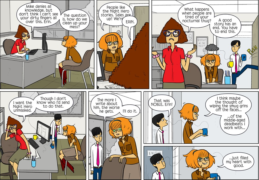 [Which happens way too often for a sane life, yet too rarely for a newspaper's existence. Erin is trapped in that paradoxical situation]